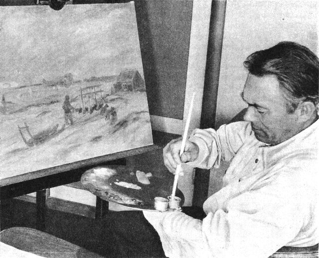 Slæderne klargøres til forårets lange bjørnejagter. (F.: Chr. Vibe. Neqe, 1940).