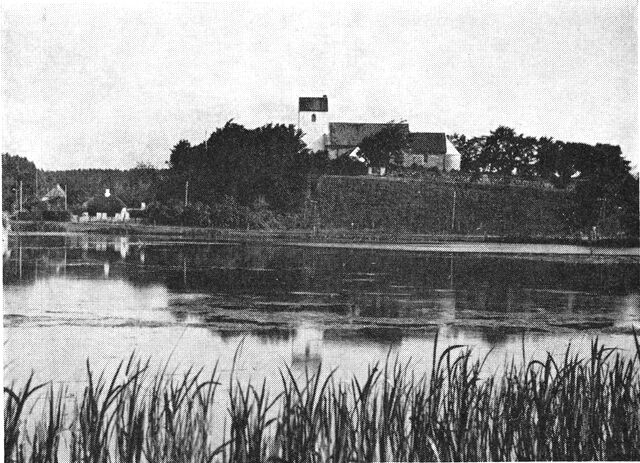 Den højtliggende kirke (1437 benævnt Skt. Mortens kirke) består af skib og kor m. apsis, tårn mod v. og våbenhus mod s. Skib, kor og apsis er fra romansk tid, af granitkvadre på sokkel m. skråkant. Den firkantede s.dør er bev., n.døren ses indvendig som blænding. Romanske vinduer er bev., omend m. udvidet lysning, i korets n.side og apsis, sidstn. m. et kulørt glasmaleri fra 1960. Korbuen har sokkel m. skråkant og profilerede kragbånd. Kor og skib er overhvælvet m. tre fag gotiske krydshvælvinger. Tårnet er en senmiddelald. tilføjelse af kvadre og munkesten, men foroven stærkt omb. i nyere tid. På s.siden læses init. EHVS 1808. Tårnrummet, der er skilt fra kirken, tjener som materialhus. Våbenhuset, af store og små teglsten, s. 1047 kan være samtidigt m. tårnet, men er ligeledes for en del ombygget. Tårn og våbenhus er hvidkalket, de øvr. mure står blanke. M. undt. af apsidens blytag er kirken tækket m. tegl. En hovedistandsættelse 1959–60 (arkt. A. Schou og Adam Christensen) har bibragt det indre et køligt præg. Kirken er tidl. rest. i slutn. af 1880erne. – I kor og apsis findes overhvidtede kalkmalerier (ornamentik fra senmiddelalder og renæssancetid). – Muret alterbord m. forsidepanel fra o. 1600. Som alterprydelse tjener en lyseholder m. et lille elfenbenskrucifiks, udf. af billedhugger Gunnar Hansen 1960. To skriftfelter fra en renæssancealtertavle er ophængt i koret. Ejendommelig romansk granitdøbefont m. fremstilling af evangelistsymbolerne, korslammet, havfrue og kentaur på den ottekantede kumme (Mackeprang. D. 352 f.); fodstykket er fra 1935. Messingdåbsfad fra o. 1700. Prædikestolen er i sin oprindelse et snedkerarb. fra o. 1575, men sen. omdannet; en bemaling (marmorering) fra 1700t. er fremdraget 1960. Nye stolestader. Mod v. er fraskilt et fyrrum, hvorover et pulpitur m. et lille orgel (A. C. Zachariasen). Klokke fra 1547. I våbenhuset er opstillet en gravsten over Niels Kraaes, f. i Bonderup 1749, og hustru Johanne Marie Kragelund. På kgd. et ligkapel.